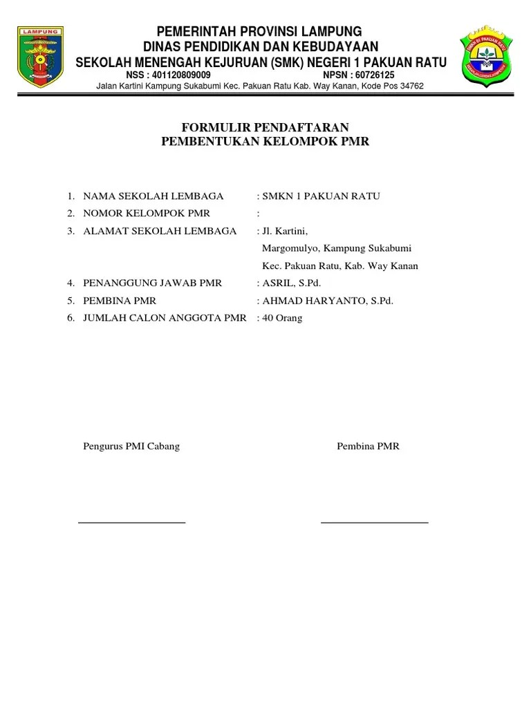Contoh Penomeran Surat Palang Merah Indonesia - Pendaftaran Pmr - (lembaran negara republik indonesia tahun 1976 nomor.
